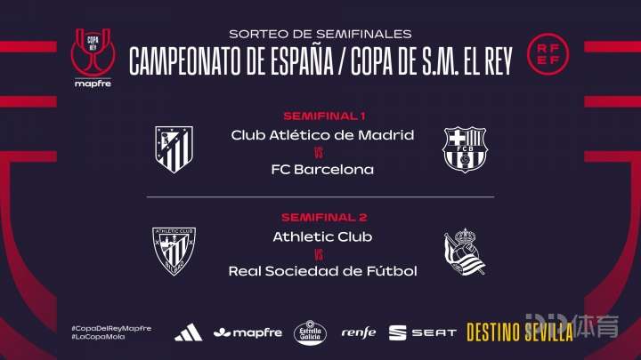 国王杯半决赛对阵抽签今天进行,最终巴萨遭遇马竞,毕尔巴鄂竞技将对阵皇家社会。