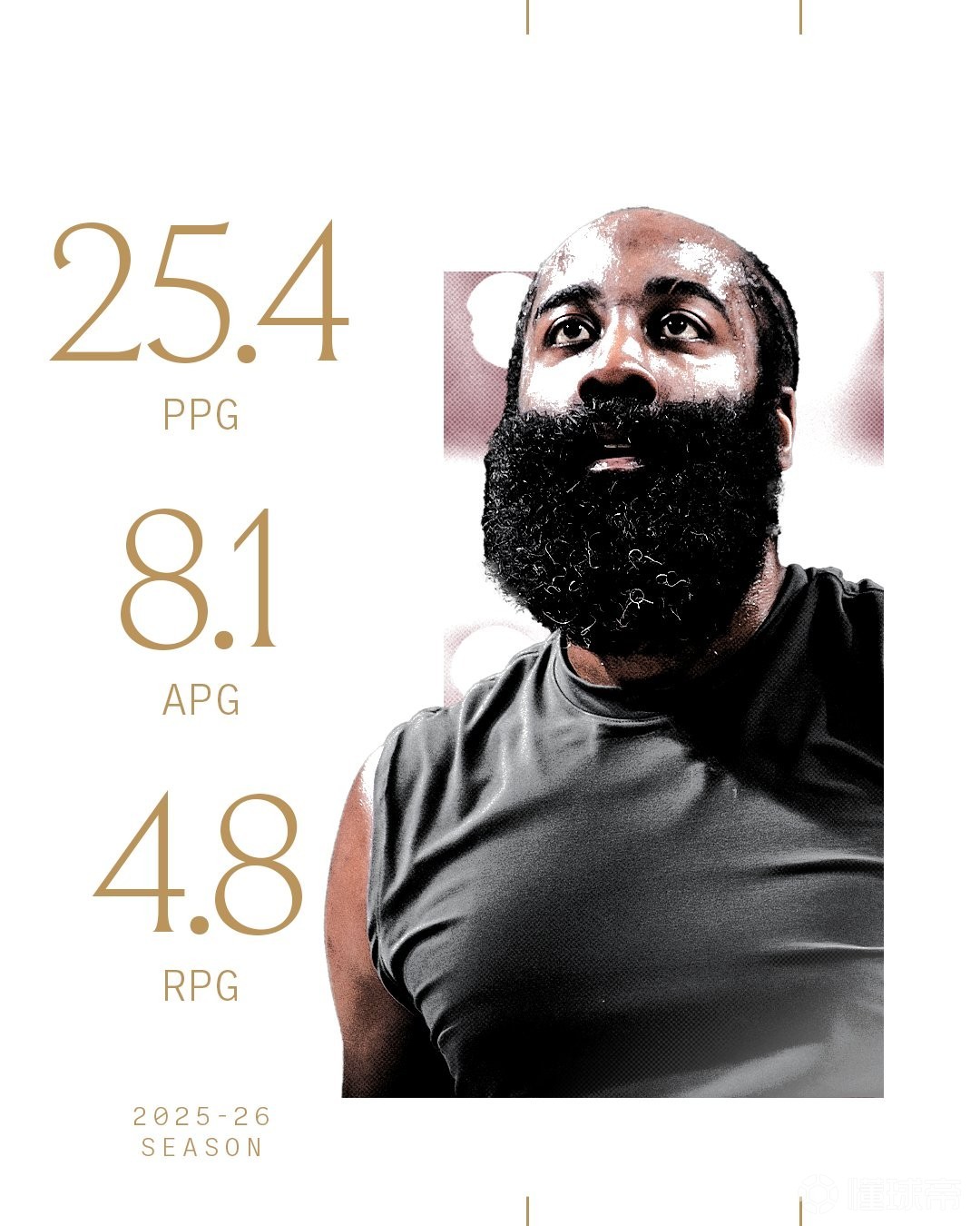 骑士还为哈登制作了历史荣誉海报:11次全明星、6次一阵、3次得分王、2次助攻王。